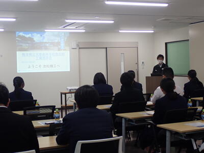 午前中の熊本保健科学大学では、まず大学や学科の概要、医療職と資格の紹介を聞きました。