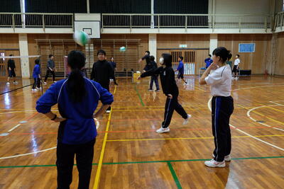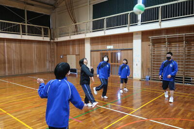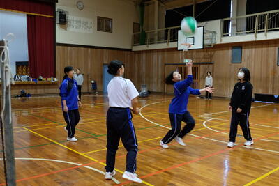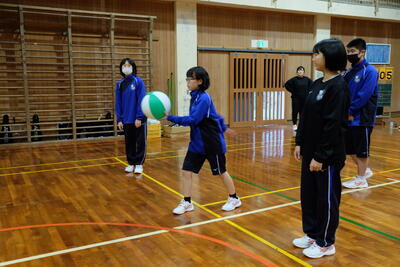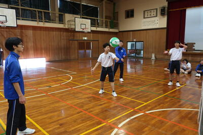 今回の種目は、ビーチバレーボールで、公式のビーチボールを使用し、各学年4名以上の2チーム編成し、総当たり戦による予選、その後決勝トーナメントによって優勝と最終順位を決めました。なお、生徒数が足りない場合は、学年団の先生方に助っ人で入って競技を行いました。