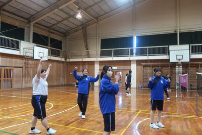 最初に、準備運動として倉校体操を行い、身体をほぐします。1年生もしっかり覚えて取り組むことができていたようです!