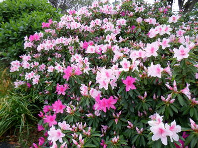 13日(月)はツツジの最盛期でした!(今年は、どちらのツツジも早いですね。)そして、八重桜も咲いていましたよ。