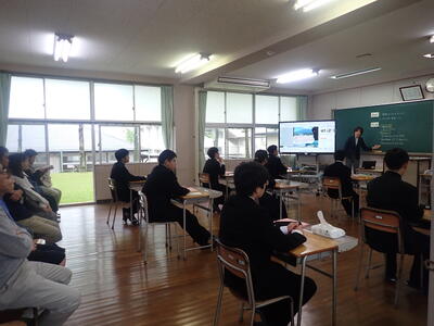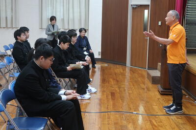 本日、6限目に全校生徒対象に交通安全教育講話を実施しました。天草警察署倉岳駐在所の方を講師としてお招きし、自転車の交通安全ならびに闇バイト防止に関するお話をいただきました。