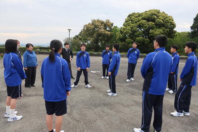 避難完了までの時間は、2分42秒でした。生徒は、私語をすることなく、速やかに避難していました。職員も、担当を分担し、校舎内に生徒が残されていないか、確認をしながら、避難場所に向かいました。