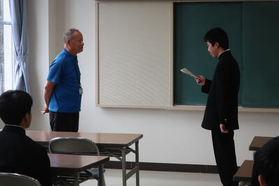 まず、生徒会役員認証式が行われました。先日の生徒会役員選挙によって選出された生徒会長、副会長が校長先生より認証を受け、新生徒会執行部が発足しました。新しい生徒会役員、各委員会の委員長が紹介された後、新生徒会長の挨拶がありました。先輩たちが築いてきた伝統を引き継ぎつつ、新しいことにチャレンジしようとする意気込みが感じられました。これまで、倉校を支えてきてくれた旧生徒会執行部のみなさん、本当にお疲れ様でした!