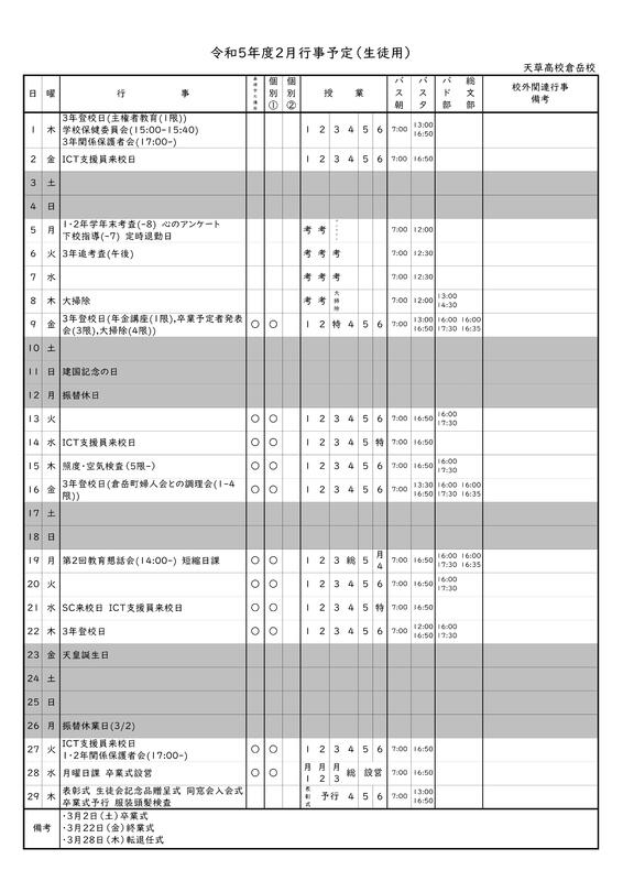 2月5日(月)~2月8日(木)の4日間、倉岳校では1・2年生の学年末考査が行われます。生徒たちは本年度最後の定期考査に向けて勉強を頑張っています。