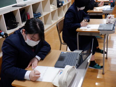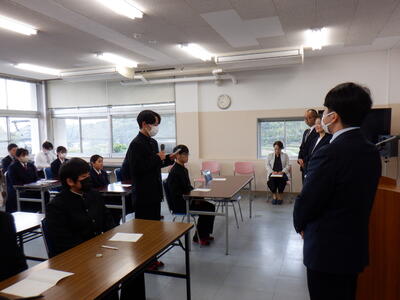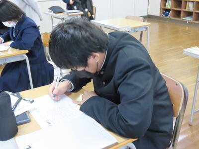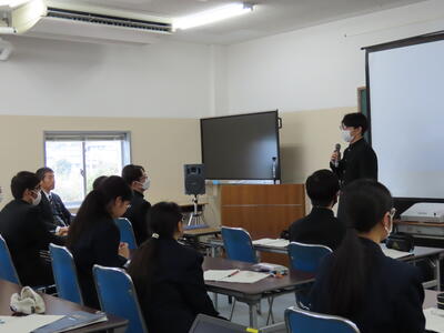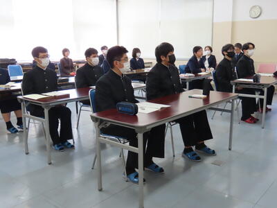 2月22日(木)の1年生のショートホームルームの様子です。担任から進路についての話があり、生徒たちはそれぞれの進路について勉強の仕方や生活について見直しました。