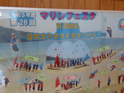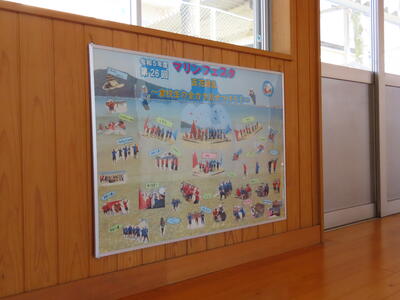 文化・放送委員会の活動の紹介です。秋桜祭の展示企画として、全校生徒がマリンフェスタで頑張った姿を吹き出しと一緒にボードにまとめてくれました。秋桜祭の後は廊下に展示し、倉岳校を訪れた方にマリンフェスタの魅力を伝えてくれています。
