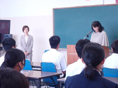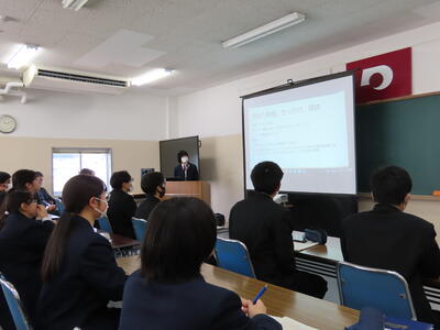 講演会終了後の感想では、「話を聞いている中で自分が知っている知識もありましたが、初めて知ったこともたくさんありました。改めて正しく知識を身につける事が出来て良かったです。また人が生まれてくる奇蹟にもたくさんの思いや意味が詰まっていて、自分の身体や命について改めて考えることが出来ました。今回の話は、今後の自分の未来にも関わってくることなので、今一度考え直して、自分や周りの人を大切にするとともに、しっかりと自分とも向き合っていきたいと思いました。」や「学校の授業では学べなかったことや動画を見ることができたので、とてもいい機会となりました。そして、産婦人科は女性の方だけが行く場所だと誤解していました。自分もお母さんのお腹にいたとき、生まれてくるとき産婦人科でお世話になっていたことを理解することができ、出産はとても大変だということを改めて思いました。他にも女性の方が子宮頸がんになる理由、それが男性が原因だったことを知って、大切な人を守るために、自分で考え命を大切にし守っていきたいと感じました。」など、今回の内容について一人一人しっかりと受け止めている様子が伝わってきました。
