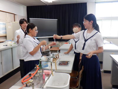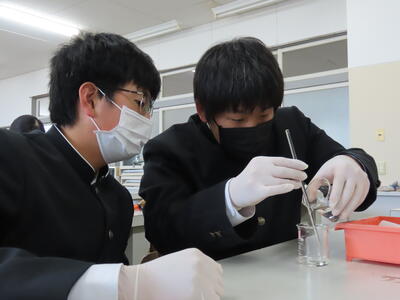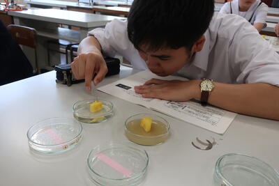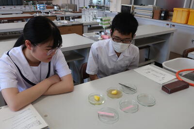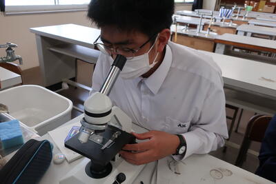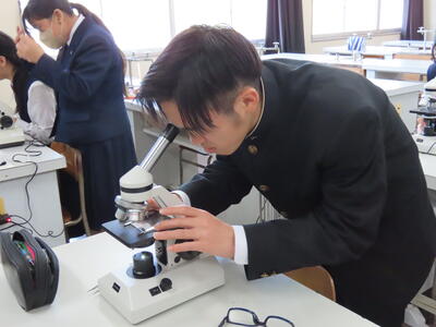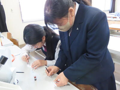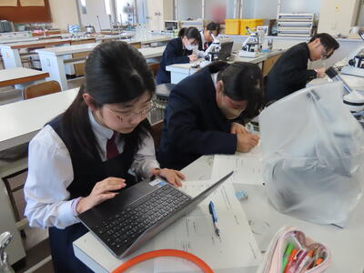 2月27日(火)の2年生の生物基礎の授業の様子です。今日の授業ではヒトの口腔上皮細胞を観察する手順、準備物を生徒たちが考え、教員に自分たちの考えを提案し、観察を行いました。