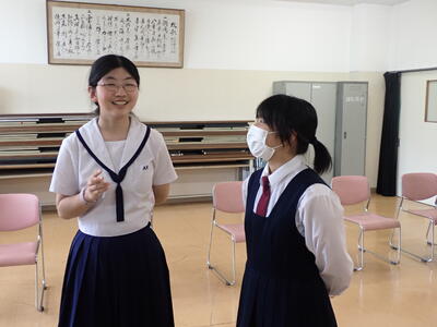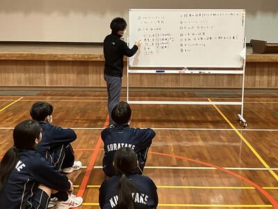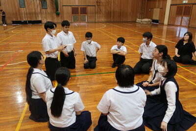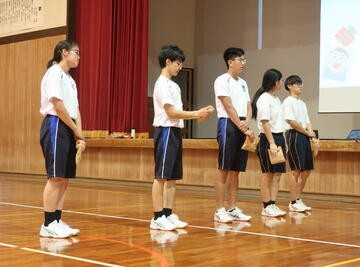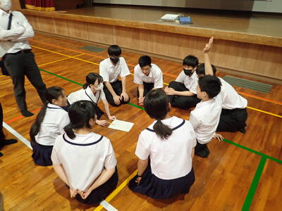次に、「人間関係づくりワークショップ」を行いました。倉岳校では、より良い人間関係を築くことを目的として、年間計画に基づいてワークショップを行っています。今日は第1回目ということで「質問じゃんけん」を行いました。学年の枠を超えて、積極的にコミュニケーションをとり、相手の発言に対して傾聴する態度を学びました。