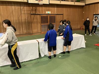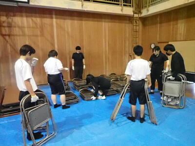 2月29日(木)に行われる同窓会入会式、3月2日(土)に行われる卒業証書授与式に向けて式場の設営を行いました。