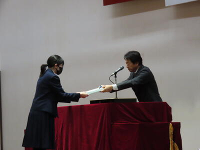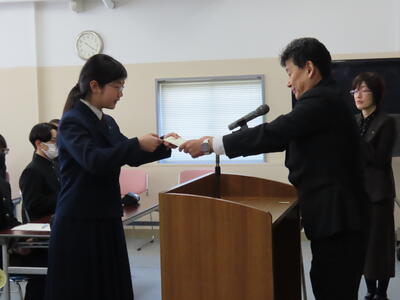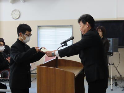 3月22日(金)、表様式と修了式が行われました。表彰式では今年度無欠席の生徒が表彰されました。