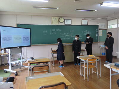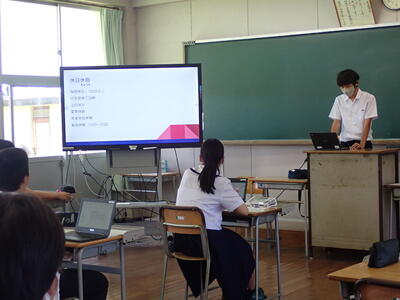 一人一人、異なる課題でしたが、どの発表も興味が持てる内容でした。スライドは、文字の大きさや図・写真の配置など、聞き手にとって見やすいスライドを作ろうという工夫が見られました。また、声の大きさや聞き取りやすさ、話すスピードにも気を配って発表している様子も見られました。