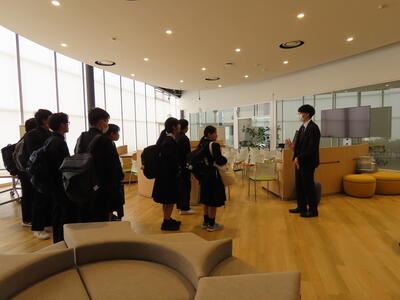 3月13日(水)、1・2年生が進路ガイダンス(ミラツクフェスティバル)に参加してきました。午前中は熊本保健科学大学に行き、大学の概要について話を聞いたり、施設見学を行いました。午後からは熊本市総合体育館で行われた進路相談会に参加し、自分が興味を持った学校や企業の話を聞きました。