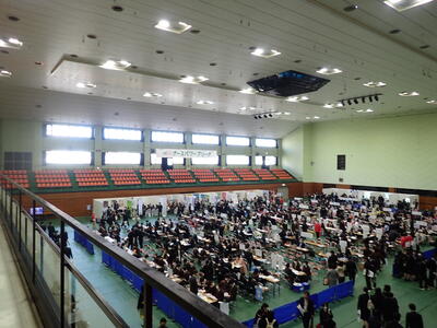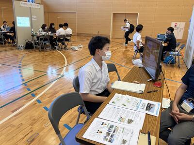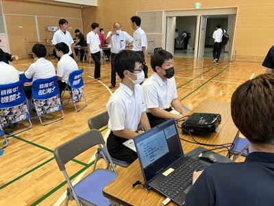 7月19日(金)午後、天草市民センター体育館にて「天草地域合同企業説明会」が開催されました。倉岳校では、進学・就職希望にかかわらず、地域の企業を知る機会、また、視野を広げる機会として、2年生は全員参加することとしています。今年は、1,3年生の参加希望者を含めて、8人で行ってきました!