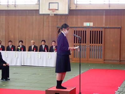 在校生からの送辞では卒業生との思い出や卒業生へのメッセージ、卒業生からの答辞では3年間の思い出などが語られました。