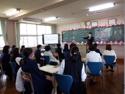 3月28日(木)、転退任式が行われました。転退任式では各先生方より御挨拶をいただきました。