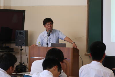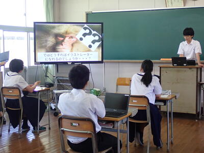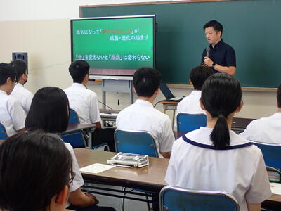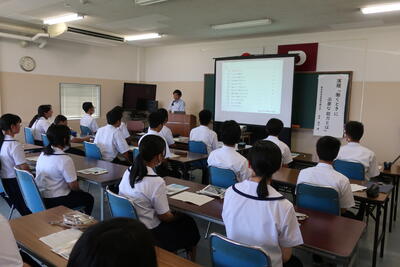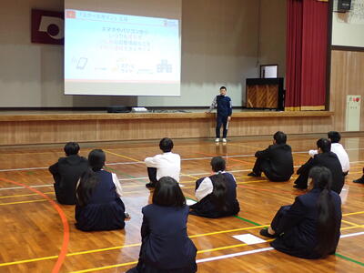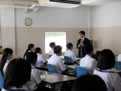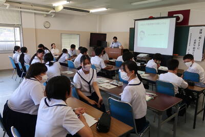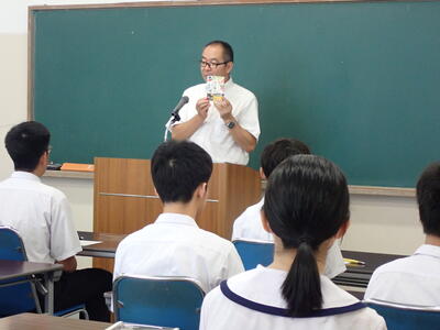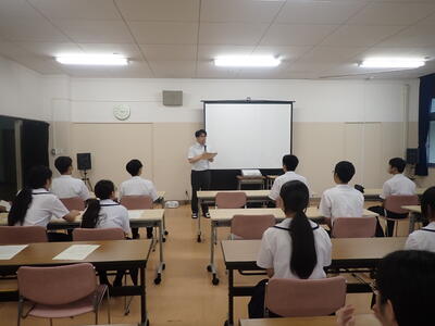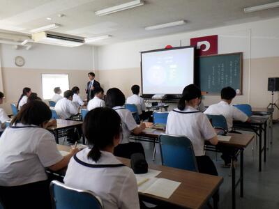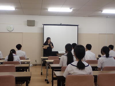 生徒は、時折、驚いたり、笑ったり、メモをとったりしながら60分間集中して講演を聞いていました。