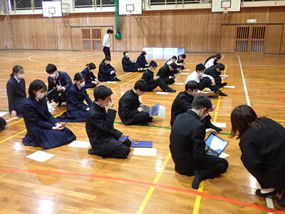 2月29日(木)、同窓会入会式が行われました。入会式の中では「これまで諸先輩方が築いてこられた歴史と伝統をしっかりと受け継ぎ母校のさらなる発展を心から願い同窓会員として精一杯力を尽くしてまいります」と代表生徒が挨拶をしてくれました。
