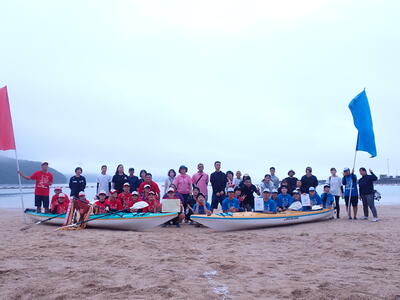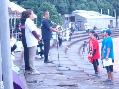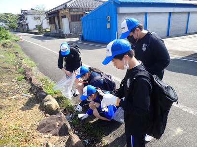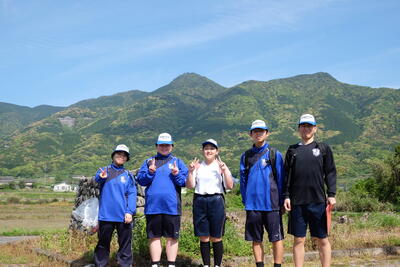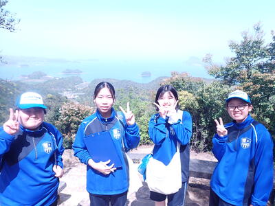 4月25日(木)、最高の晴天の下、歓迎遠足が行われました。1~3年生の混成チームで天草・倉岳にまつわるクイズに答たり、美しい景色の写真を撮影したりしながら、約8キロの道のりを歩きました。また、道中ではゴミを拾いながら清掃活動も行いました。遠足のルートの中では、日本に3カ所しか生息していない大変貴重な「アイラトビカズラ」を見ることができます。理科の先生からその生態についての詳しい説明もあり、学びの多い遠足となりました。最終目的地の「えびすビーチ」に到着後は、各学年による出し物が行われ大いに盛り上がりました。歓迎遠足を通して、学年を超えた生徒同士の交流を深めることができました。