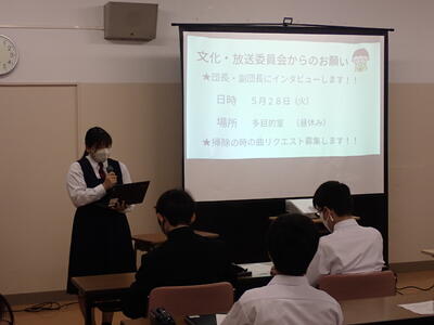 4月23日(火)、第1回各種委員会が行われました。委員長を中心に、年間目標、1学期の目標、今後の計画について話し合いを進めました。今回話し合った内容は、5月に行われる生徒総会で発表します。