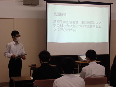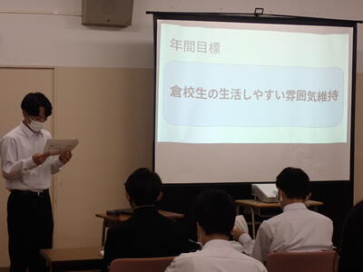 4月10日(水)、対面式・部活動紹介が行われました。生徒会長から歓迎の言葉が送られた後は、生徒会企画の「倉校クイズ大会」、「マイノリティーゲーム」で盛り上がりました。全学年混成のチーム戦で、1年生との交流を深めることがきました!対面式後には部活動紹介が行われました。1年生も昨日からの緊張が和らぎ、少しずつ倉校に慣れてきました。倉校生活をともにエンジョイしましょう!