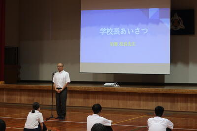 大掃除のあと、始業式が行われました。始業式では、校長先生よりお話をいただきました。「2学期も、失敗を恐れず、『やってみよう!』の精神で挑戦を続けて欲しい。」ということと、校長先生が夏休みに読まれた小説の紹介とともに「これから過ごしやすい季節となるので、本を読み、言葉や表現力を体得して欲しい。」ということを話していただきました。
