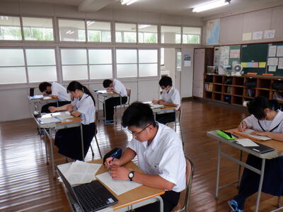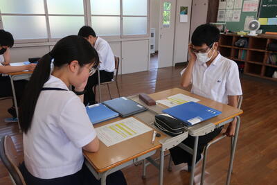 倉校生もこの暑さに負けず、夏休みを充実させていってほしいと思います。3年生は受験のための勉強や面接練習に、登校してきています。1・2年生もがんばれ!