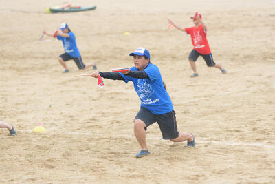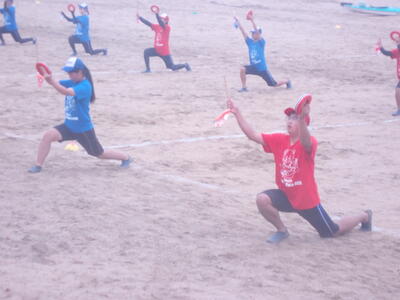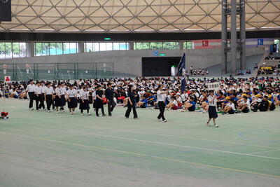 選手宣誓を終えて、いよいよゲームのスタートです。2ゲームを行い、学年対抗と個人の成績で争います。