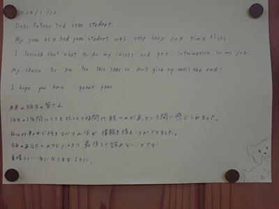 自分の五感がとらえるもの、五感の持つ力を大切にする方法ということで、生徒たちは認識を新たにし、自分の気持ちをコントロールするコツを身につけることができたと思います。試験でもおちついて力を発揮してほしいと思います!