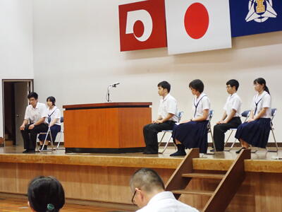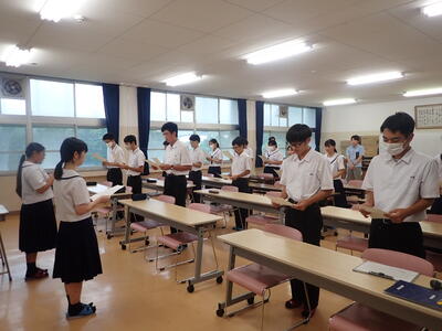 全校集会の最後には、「いじめを許さない宣言文」を全員で唱和を行いました。