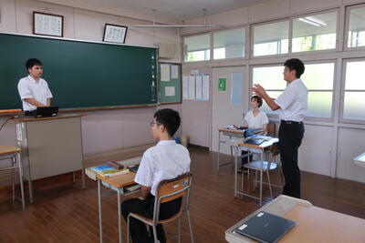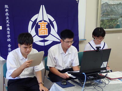 9月13日(金)1,2時間目に「第1回分校同盟」が実施されました。「分校同盟」とは、熊本県立高校 One Team プロジェクト事業の一つとして、熊本県内の3つの分校(人吉高校五木分校、八代農業高校泉分校、天草高校倉岳校)で、連携しながら取り組んでいる事業になります。本日は第1回ということで、1,2年生がオンラインで交流を行いました。