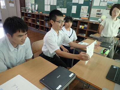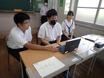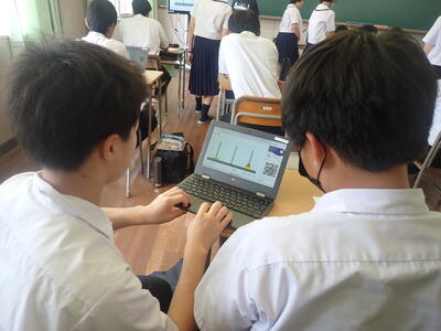 質疑応答後、聞き手だった生徒は、発表内容の評価をGoogleフォームから回答しました。