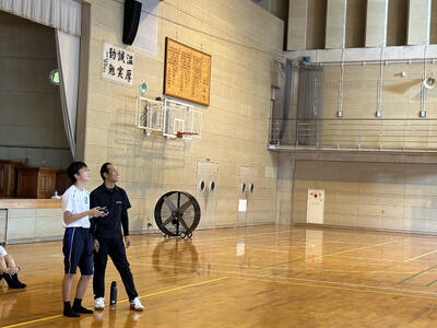 8月23日(金)、1年生のうち5名が天草工業高校の体育館で行われた「ドローン講習会」に参加しました。これは、熊本県立高校の One Team プロジェクトの一環で、「天草の未来を創造しよう」と銘打って、他校生と一緒にドローンについての理解を深め、課題研究や授業・実習等で探究的な学びの充実を図るというものです。当日は、ドローンスクール岳(がく)さんのご指導の下、様々な操作を行わせていただきました。