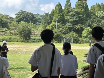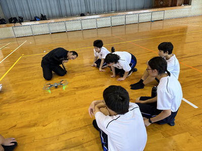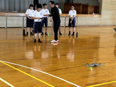近年ではドローン操縦士という職業も出てきており、総合的な探究の時間でこの仕事について調べた生徒もいたところでした。今回の研修が生徒の進路決定の一助となり、学びに生かせることを願っています。(次は9月に実施されることになっており、次回も楽しみです。)