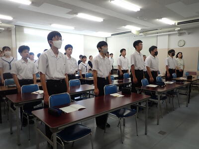 認証式後に、終業式が行われました。本日は校長先生がご不在でしたので、教頭先生よりお話をいただきました。「この夏休みに、何か1つのことを極限までやりつくしてほしい。人間は極限まで行うことで、本当の自分自身が見えてくる。」ということを話していただきました。この夏休みに、何か1つ、限界まで極めてみてはどうでしょうか?