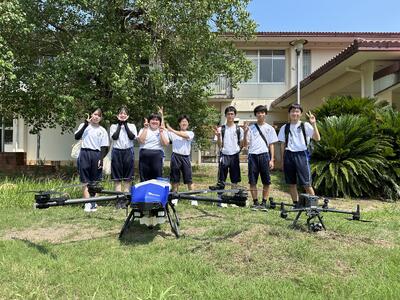 9月7日(土)、1年生のうち7名が、天草市有明町にある「ドローンスクール岳」さんで実技講習会の第2回に参加してきました!これは、無人航空機(ドローン)を活用した探究活動をとおして「天草の未来を創造しよう」という 県立高校 One Team プロジェクトの一環となるもので、今回も他校の生徒と一緒に説明を伺い、実技をさせていただきました。