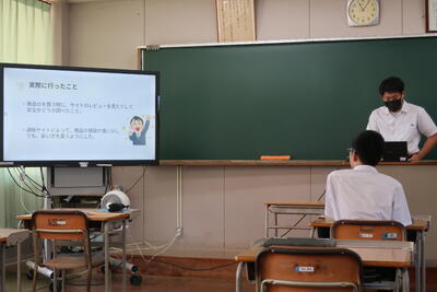 その中の自由記述欄に「スライドの内容が防災関係で、とても為になりました。また、自分は防災に関して、いざと言う時に何も準備ができていないので、自分も防災グッズを準備していこうと思いました。」や「ネットショッピングは個人的に危険なイメージが強く使っていないので、デメリットとセットでメリットも知ることができたので良かったです。」、「スライドにとても工夫されている所があり、とても見やすかったです。一番良かったと思ったのは、スライド内に実際に自分が行ったことの写真が添付されていて、発表の説明が分かりやすかったところです。」という感想があり、お互いの発表を聞く中でも学びを深めることができていた様子が伺えました。