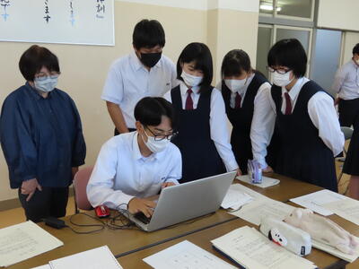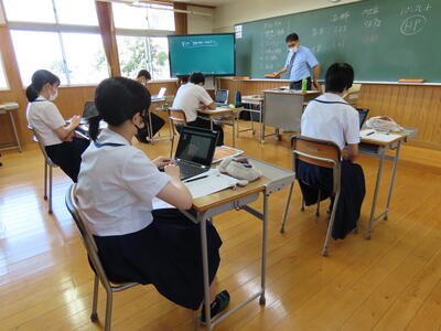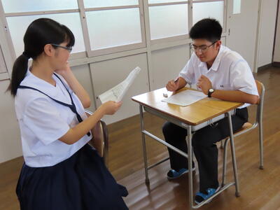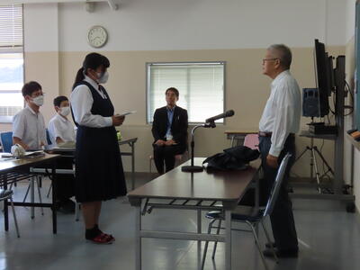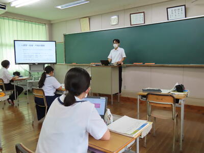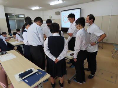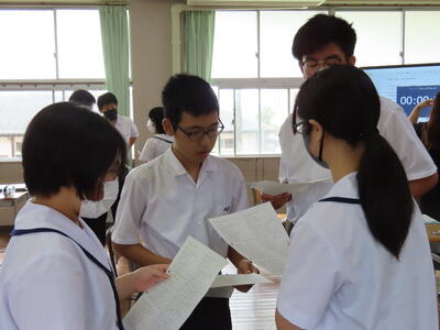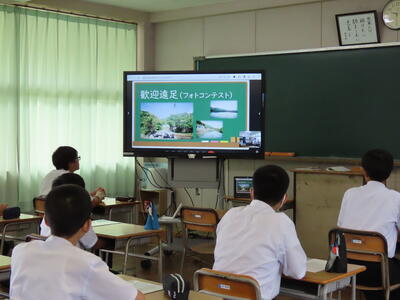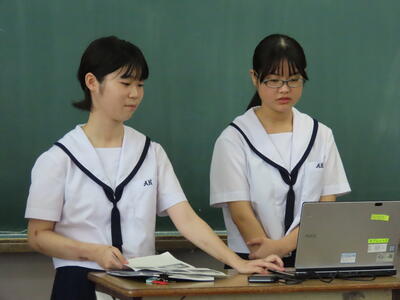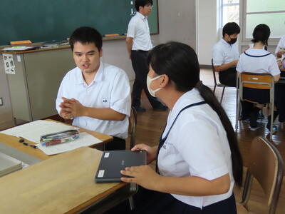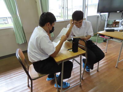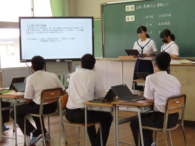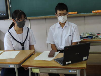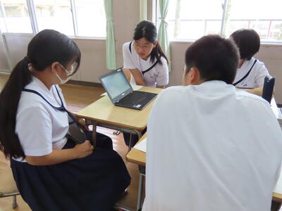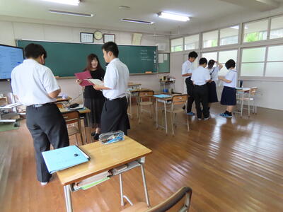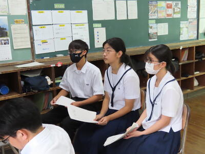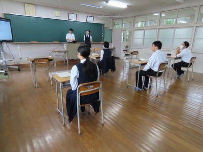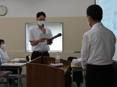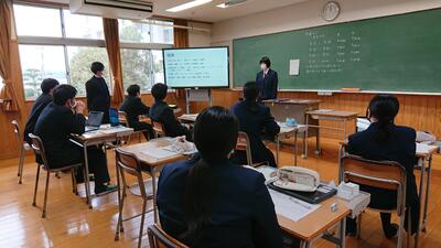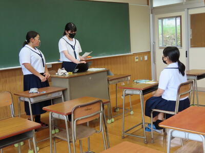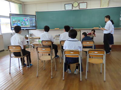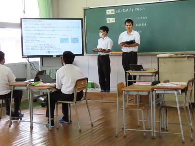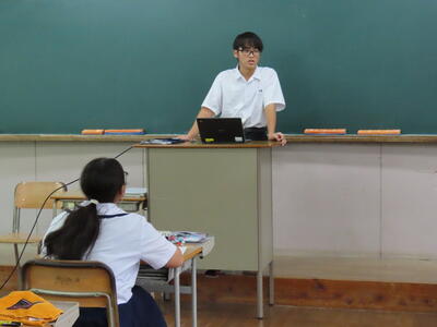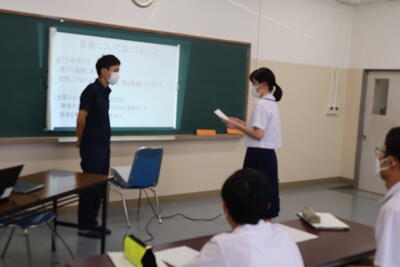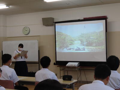 9月13日(水)に行われる八代農業高校泉分校、人吉高校五木分校との探究活動の交流会に向けて、1年生が総合的な探究の時間に学校紹介の練習をしました。