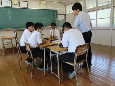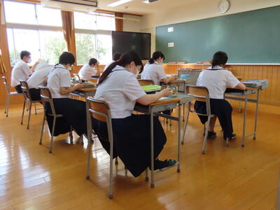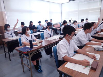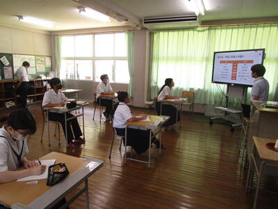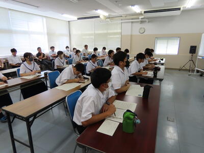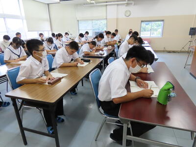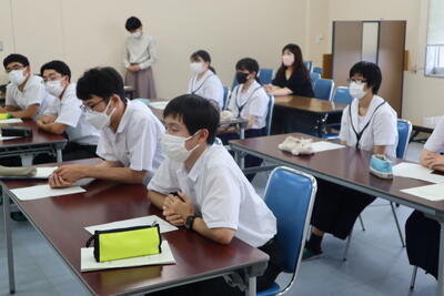 7月21日(金)、倉岳校の体験入学を実施しました。開会後は学校の概要説明が行われ、休憩を挟んで国語、数学、英語、理科の各科目で体験授業が行われました。