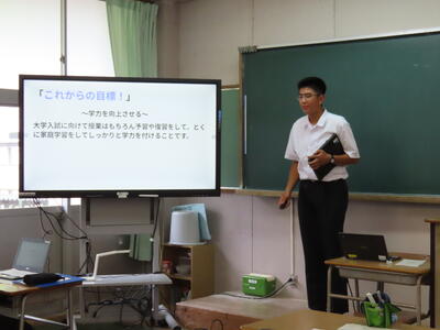 倉岳校の3年生は8月末から公務員試験、9月16日から就職試験が始まります。今日の夕方のショートホームルームでは担任の先生より「今まで一生懸命取り組んできたことを思い出して、自信を持って頑張ってきてください」と激励の言葉がありました。