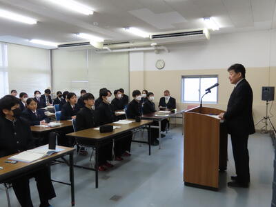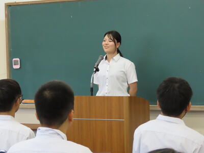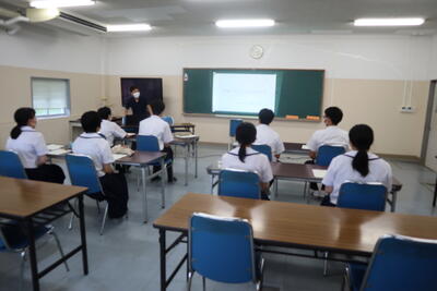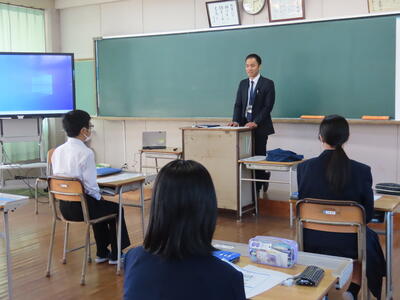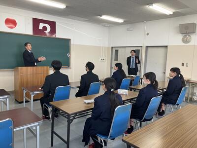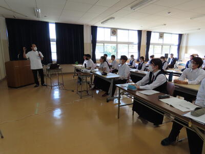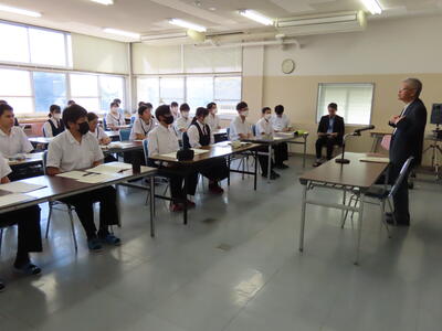 9月20日(水)、天草信用金庫より講師を招き、キャリア教育講演会が行われました。講演会の中では「働くことの意義」や「社会人としての心構え」などについてお話をいただきました。
