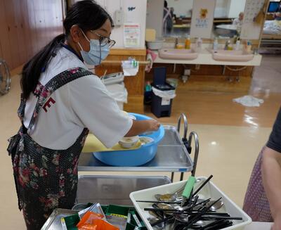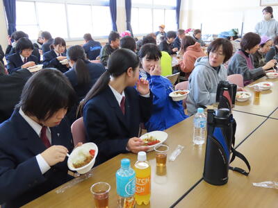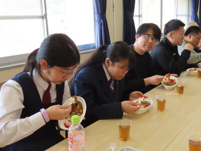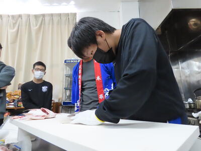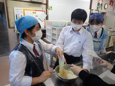 12月15日(金)、総合文化部の生徒が3年生の送別会として調理実習を行いました。調理実習では豆腐入りのドーナツを3年生と一緒に作りました。