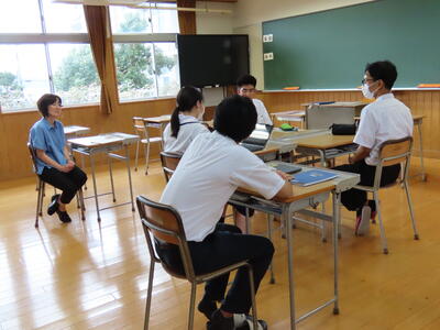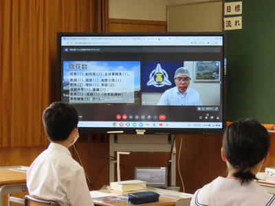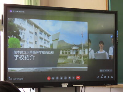 9月13日(水)、同世代の多様な人とのコミュニケーションが取れるようになることを目的として、八代農業高校泉分校、人吉高校五木分校の生徒と倉岳校の1・2年生がオンラインで交流しました。各学校から学校紹介があった後に5班に分かれて、自己紹介などを行いました。
