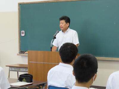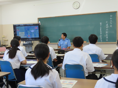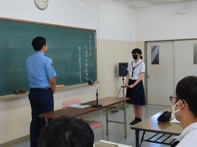 7月18日(火)、天草警察署倉岳駐在所より講師の方を招き、交通安全教育講話を実施しました。講話の中では自転車での危険行為や自転車事故の罰則などについて学ぶことができました。