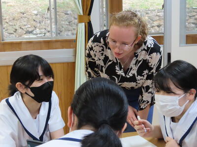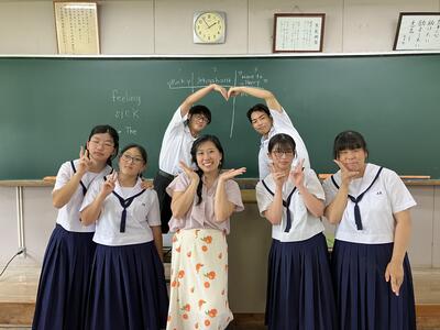 今夏、ALTのSarah先生がアメリカに帰国されます。倉岳校では7月13日(金)のSarah先生の最後の授業で生徒が作成した色紙を渡し、Sarah先生からもお別れの挨拶をいただきました。