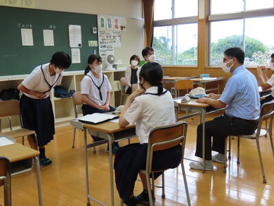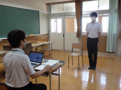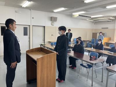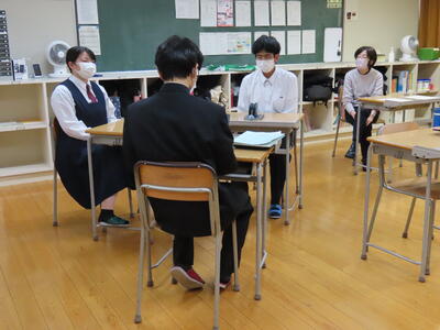 9月13日(水)、9月16日(土)より開始される就職選考試験に際し、ジョブカフェ・天草ブランチ様より講師を招き、実践的な面接指導を受けることにより、就職試験に向けた意識を高めるとともに、自信を持って選考試験に臨む態度の育成を図ることを目的として模擬面接会が行われました。