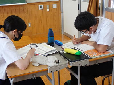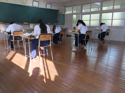 10月2日(月)の朝の様子です。倉岳校では10月3日(火)〜10月5日(木)に中間考査が行われます。生徒たちは朝のショートホームルーム前の時間を利用してテスト勉強をしています。