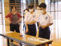倉岳校の1年生6名が、天草工業高校で実施された One Teamドローン実技講習会に参加しました。講習会ではドローンのことやドローンの活用法について説明をいただいた後に、ドローンの操作方法の指導を受け、生徒たちが実際にドローンを操作しました。初めは思うように操作できずにいましが、徐々に操作に慣れていき、講習会終盤では上手にドローンを操作していました。