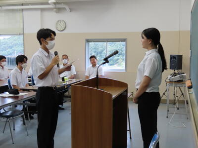 倉岳高校に新しい養護の先生がいらっしゃいました。9月1日(金)に新任式を行い、生徒たちに挨拶をしていただきました。これからよろしくお願いします。