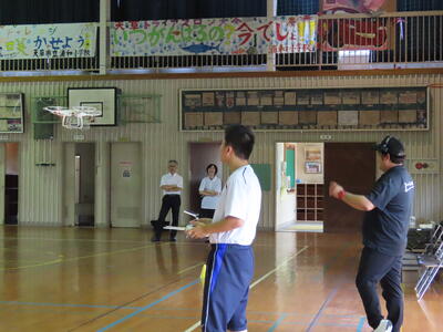 9月9日(土)にドローンスクール岳で行われたドローン合同実技講習会に倉岳校の1年生が参加してきました。講習会では航空撮影ができるドローンや農薬等を散布することができるドローンデモンストレーション飛行を見たり、実際にドローンを操作したりしました。